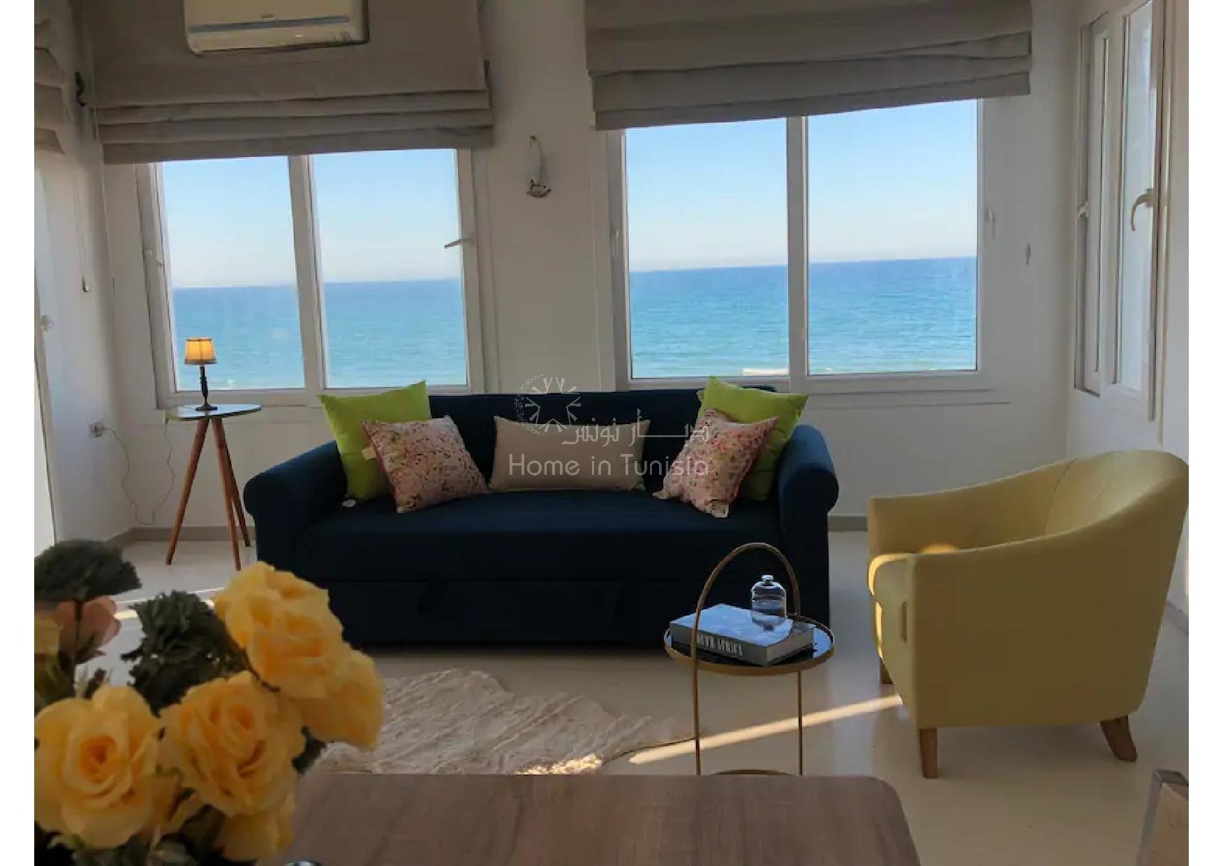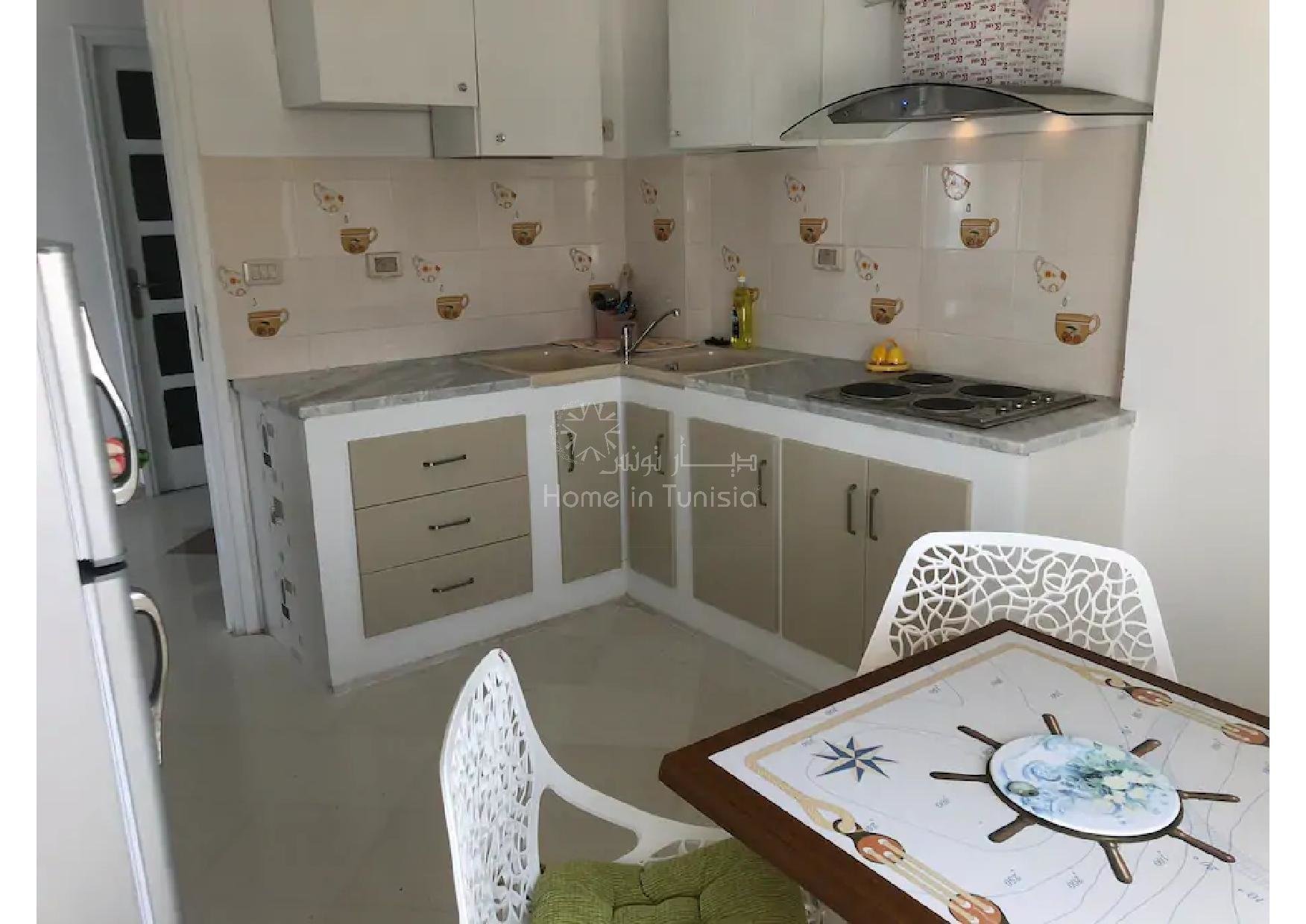 A louer un très bel appartement de type s+1 luxueusement meublé situé à menchia hammam sousse au 1er étage d'une résidence familiale calme et sécurisée avec de bon voisinage. L'appartement comprend: - 2 salons bien meublés avec vue mer - 1 chambre à coucher meublée - 1 cuisine équipée - 2 salles de bain avec douche - 1 belle terrasse vue mer - 1 abri de voiture(garage) L'appartement est équipé de climatisation individuelle, internet, abri de voiture , accès à la mer. Location minimum 3 nuits.