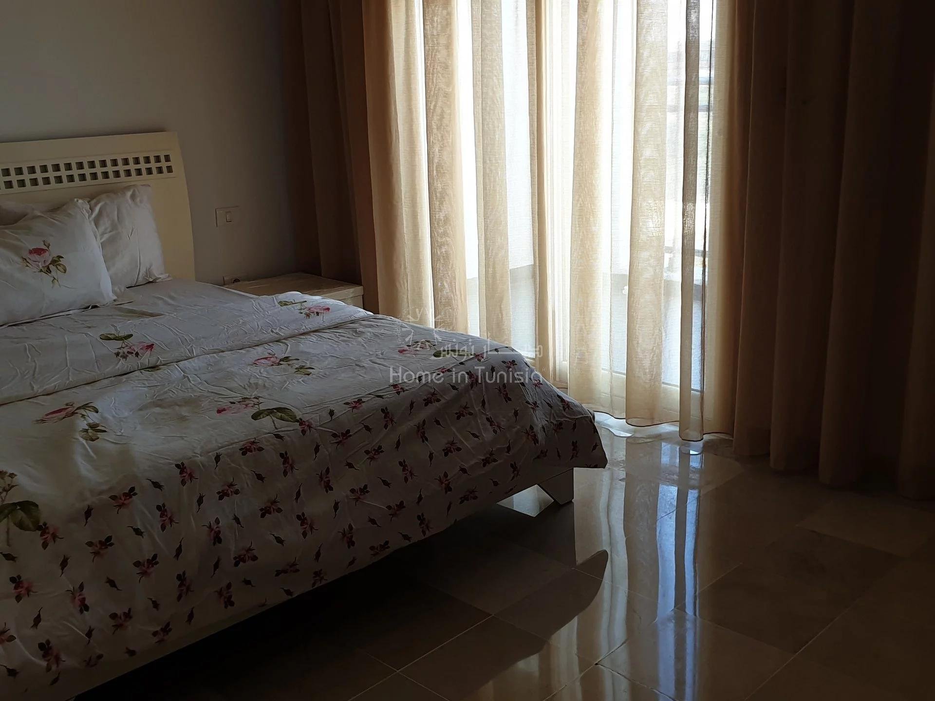 Découvrez ce joli appartement destiné à la location sasonnère, ce dernier est situé au 5 ème étage d'une magnifique résidence dotée d'une piscine et d'un système de surveillance garantissant une bonne sécurité. Emplacement Il est basé en plein zone touristique hammam sousse, pieds dans l'eau et proche de toutes commodités : Transports, Supérette, Café, etc. Composition - Une spacieuse salle de vie combinée avec la salle à manger - Une cuisine lumineuse bien équipée , - Une grande terrasse qui fait l'angle offrant une vue panoramique et latéral sur la mer, - Deux chambres à coucher - Une Salle de bain. - WC independant Equipement - Climatiseurs dans toute les pièces - chauffage central - Assenceur - Piscine commune