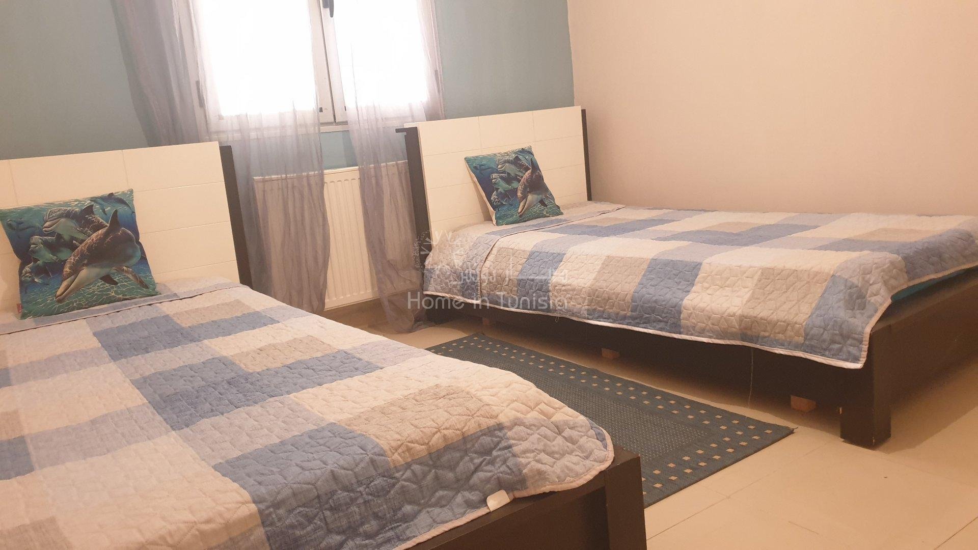 L'agence Home in Tunisia vous propose de découvrir ce bel appartement s+2 dédié à la location saisonnière. Emplacement: En pleine zone touristique à hammam Sousse et dans une résidence bien sécurisé Composition: Il est composé de: - Une spacieuse salle de vie avec un grand balcon donnant directement sur la route touristique. - Une cuisine séparée et bien équipée avec un grand séchoir, - Deux chambres à coucher - Une salle de bain Equipement: Tout confort, vous disposez de (tv lcd+ antenne parabolique + cuisine équipée réfrigérateur, ...). - Climatiseur, - Chauffage central A la résidence: - Ascenseur - Système de sécurité
