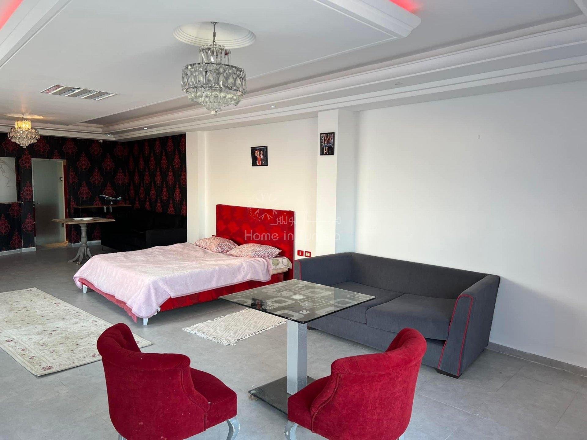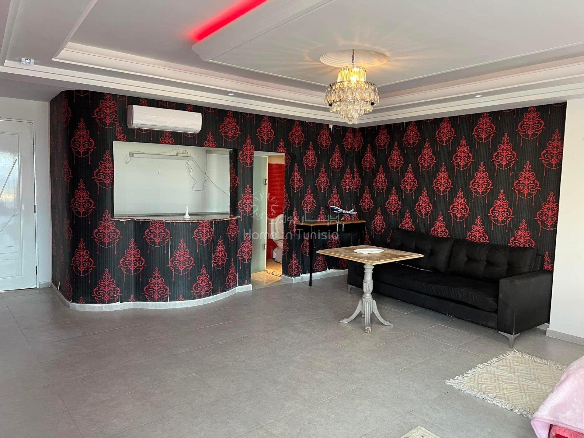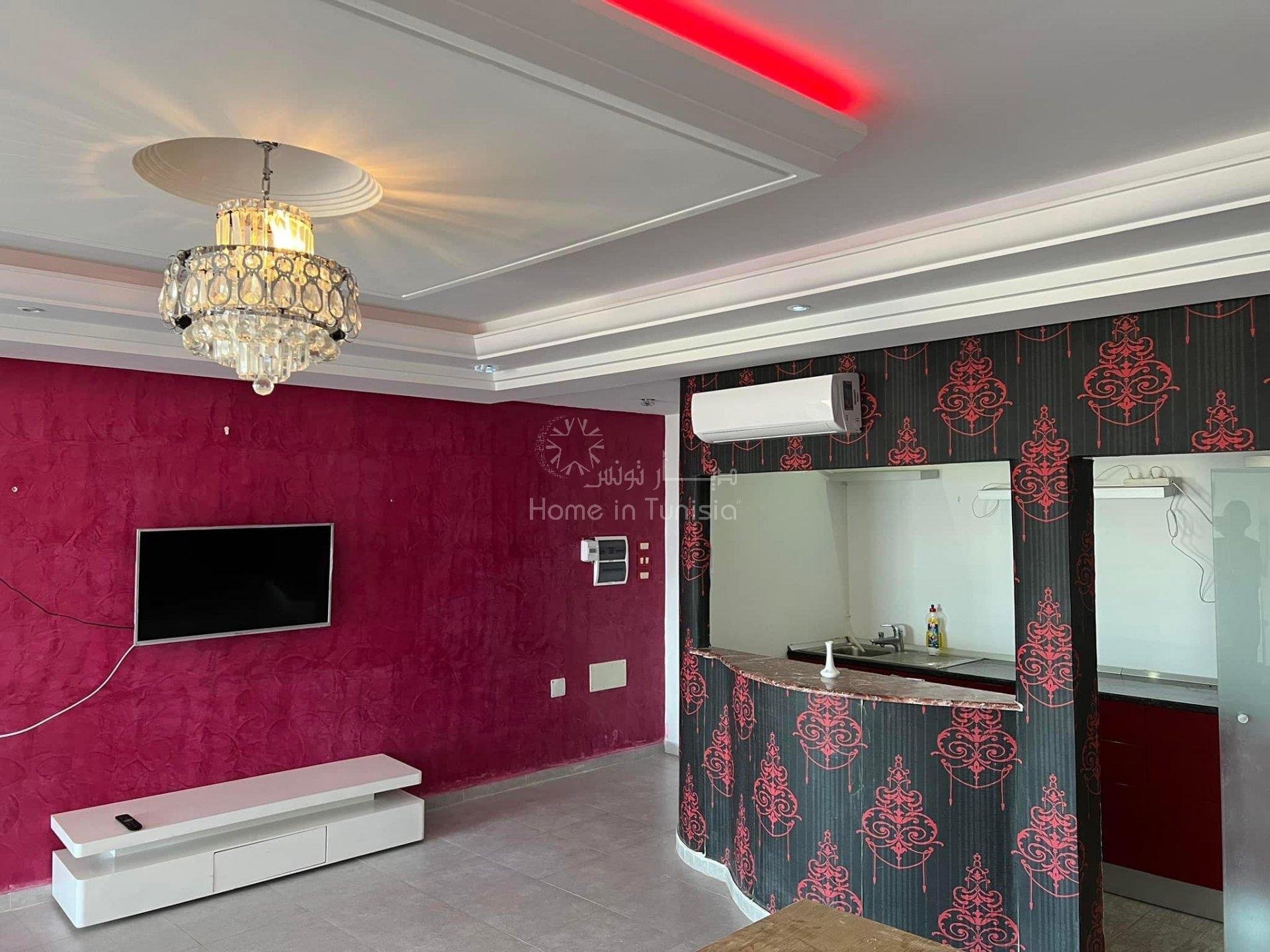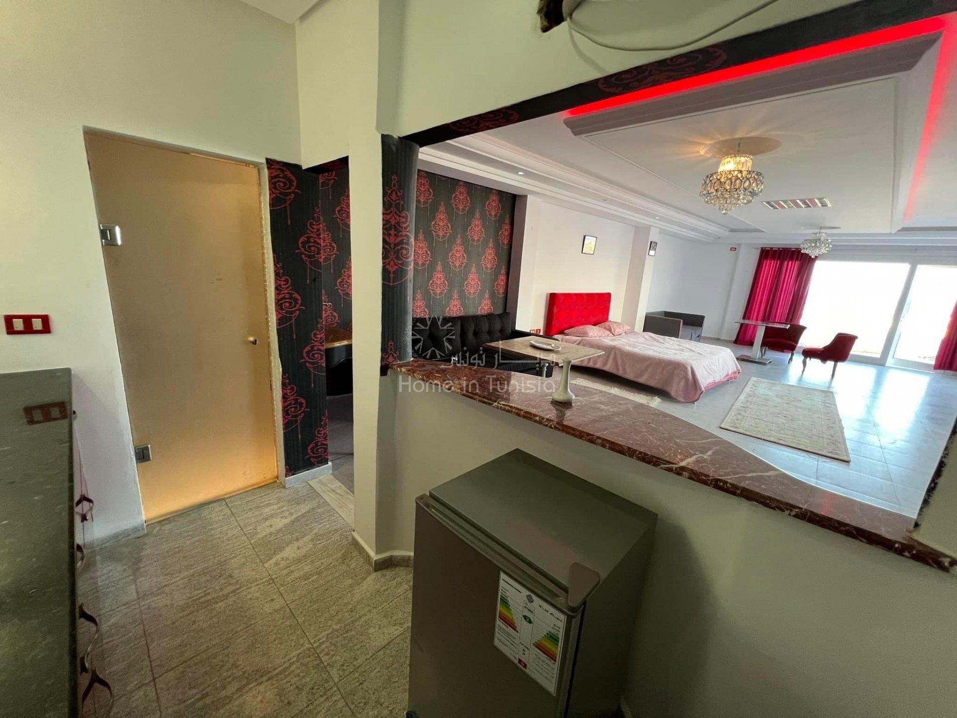 Découvrez ce joli studio destiné à la location saisonnière, ce dernier est situé au 4ème étage, pres de la plage, d'un ascenseur et d'un gardien disponible 24 H / 24. Emplacement L'appartement est situé en plein route touristique de Sousse - Kantaoui, à proximité de la mer et de toutes les commodités : Transport, Restaurants, Snack bar, Centre commercial, etc. Composition - Une salle de vie bien équipée, - Une cuisine américaine équipée, - Une grande terrasse avec vue panoramique - Une salle de bain, Equipements - Chauffage central, - Climatiseur.